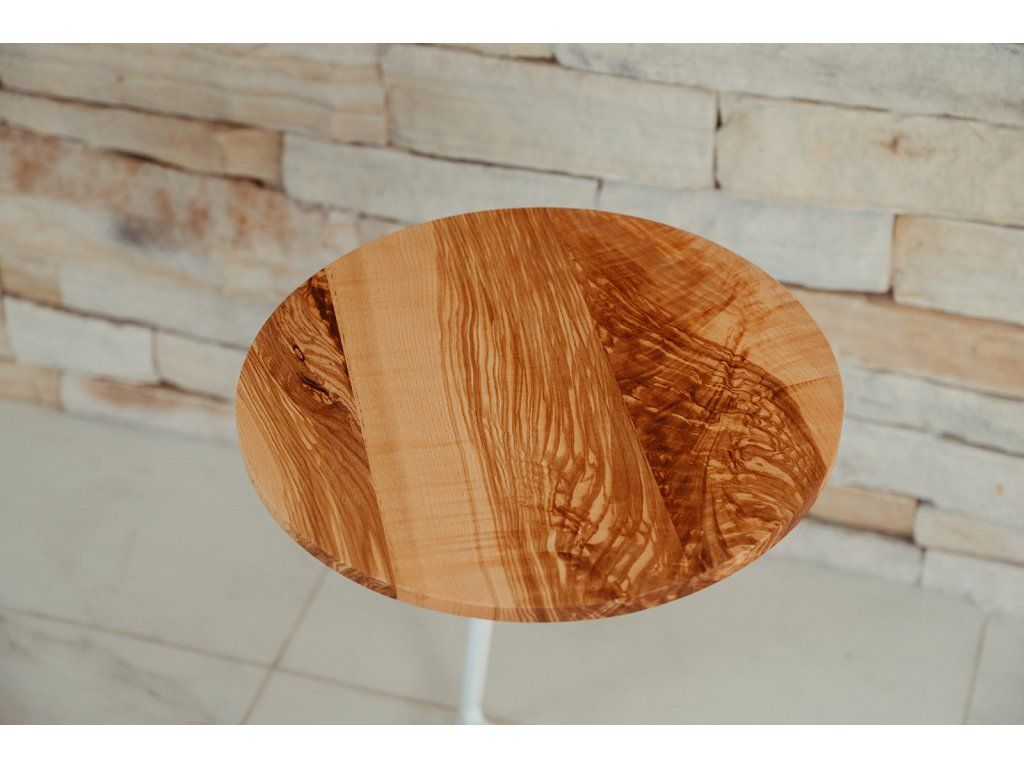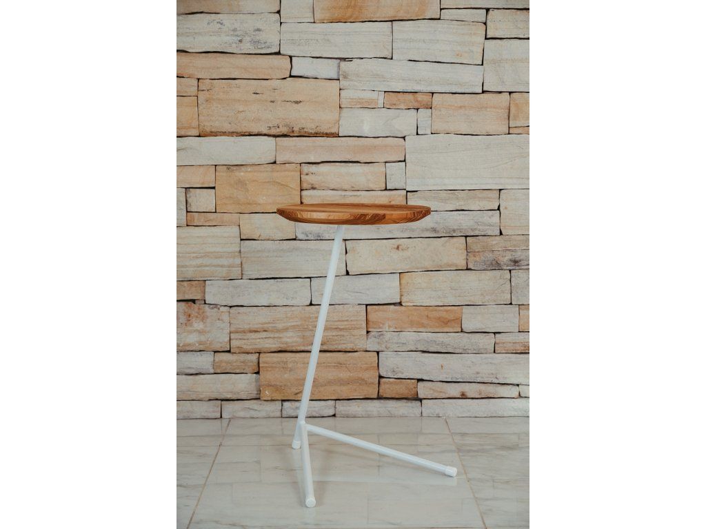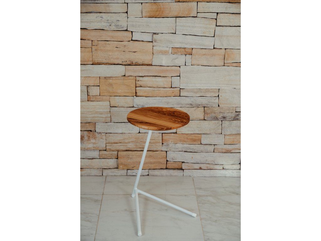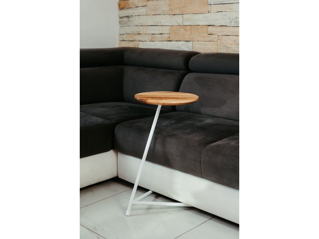 Stylový odkládací stolek s pevnou konstrukcí svařenou z kovových trubek. Horní část tvoří masivní kulatá deska, která dodává stolku přirozený vzhled a zároveň zajišťuje stabilitu. Díky jednoduchému designu se hodí do moderního interiéru a poskytne praktické místo pro kávu, knihu nebo notebook.