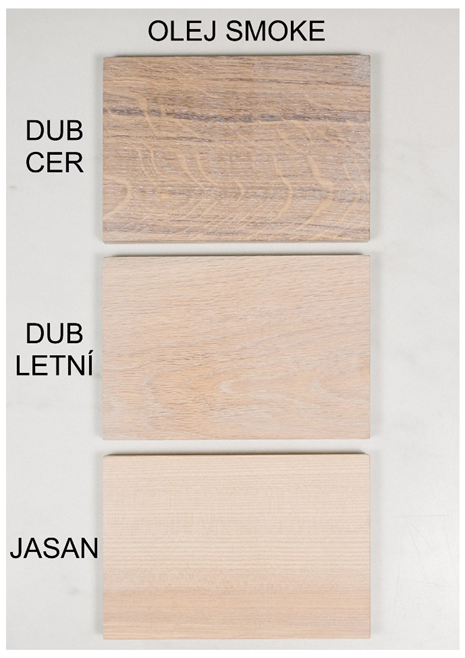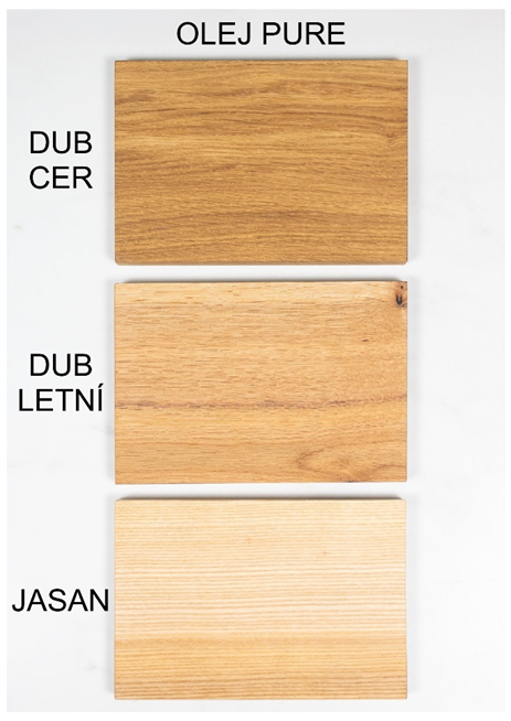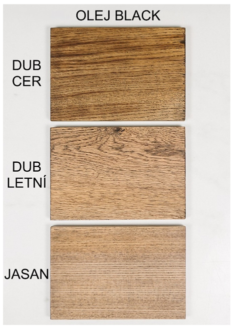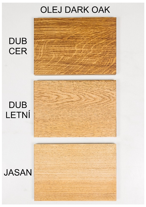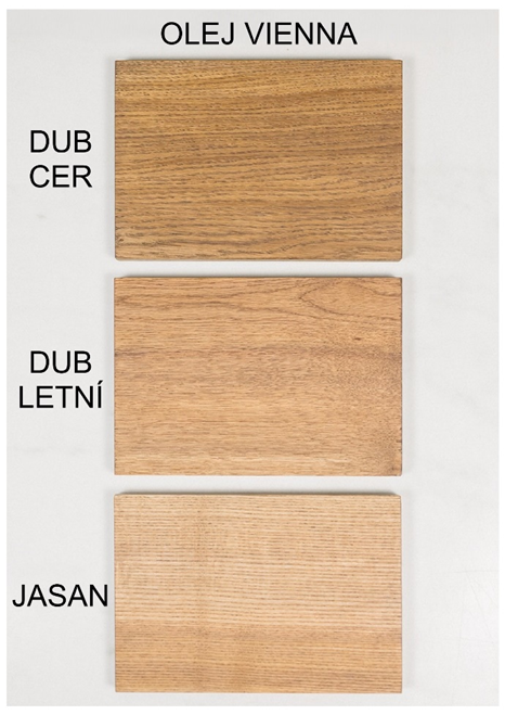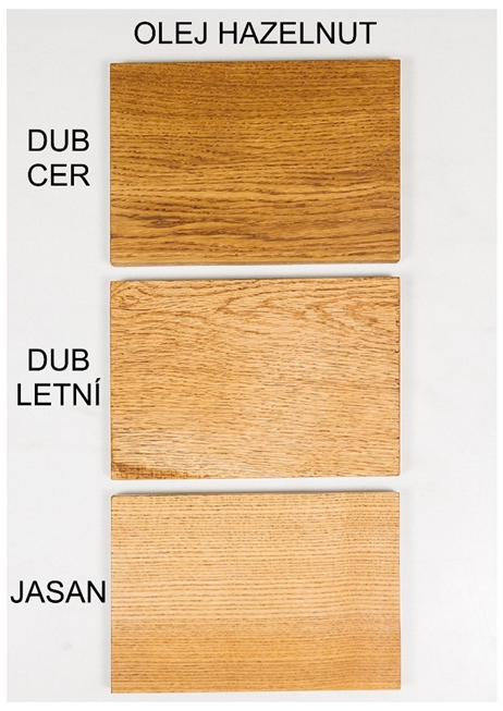 Vzorky Typy dřevin Dub Cer – tmavě hnědábarva Dub letní – žlutohnědábarva Jasan – světlá barva svýraznou kresbou Vzorky olejů / laků Hrany Hrana rovná 45° Hrana rovná se zaoblením Hrana zkosená Hrana přírodní